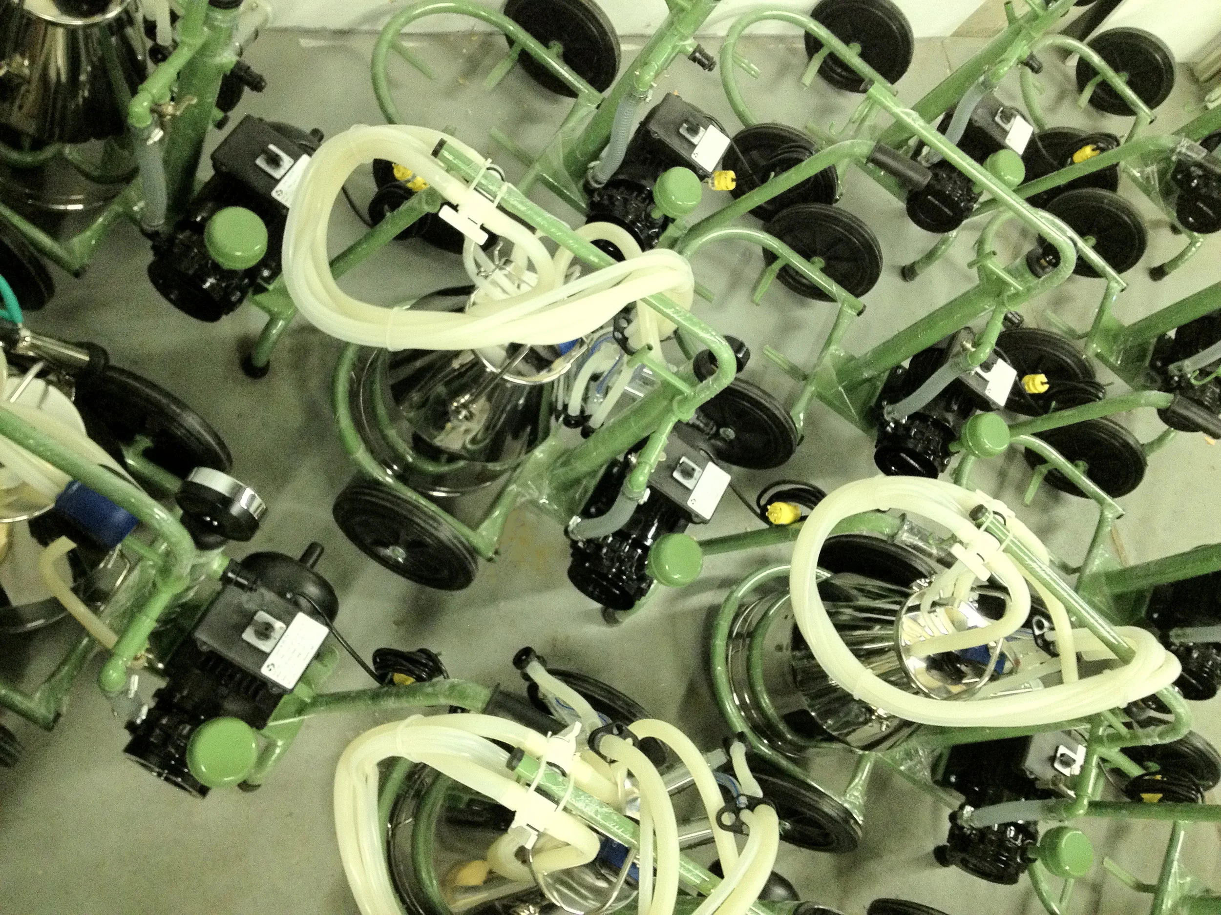 Tout ce qui est nécessaire pour traire l'animal est monté sur le chariot, la pompe à vide, le réservoir à vide, le régulateur, le pulsateur, les trayeuses et le seau. La seule chose nécessaire est une rallonge.